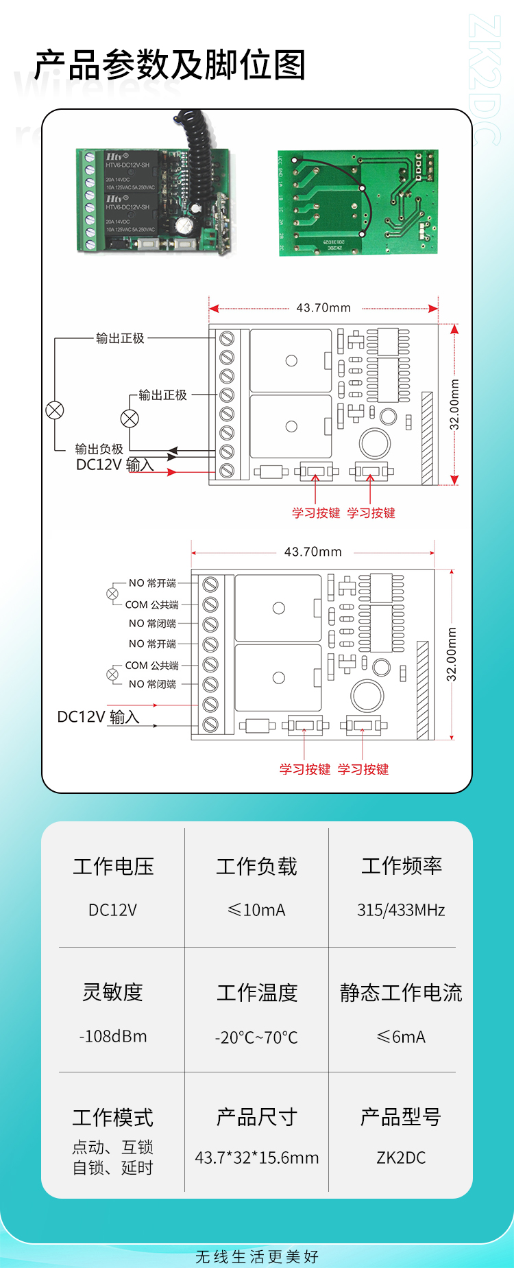 ZK2DC是一款兩路無(wú)線控制器,直流12V電壓