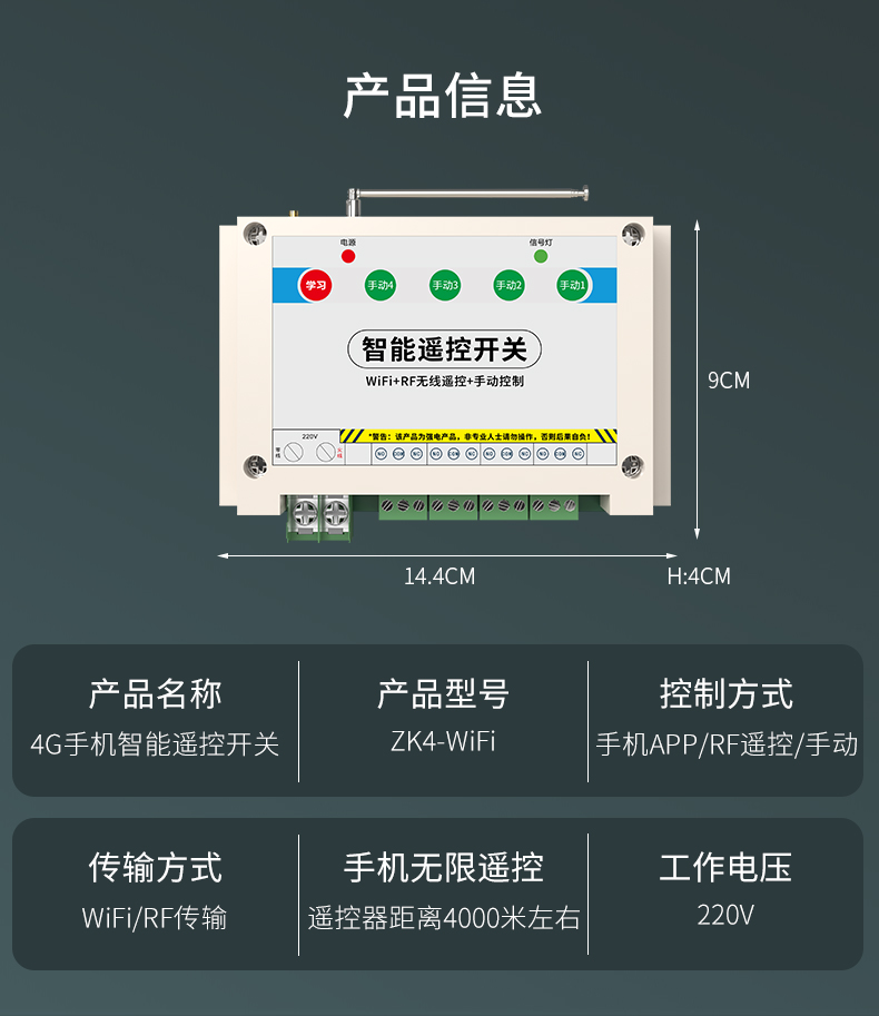 ZK4-WIFI是一款4路智能遙控開關,可使用手機進行遠程遙控,不限距離。