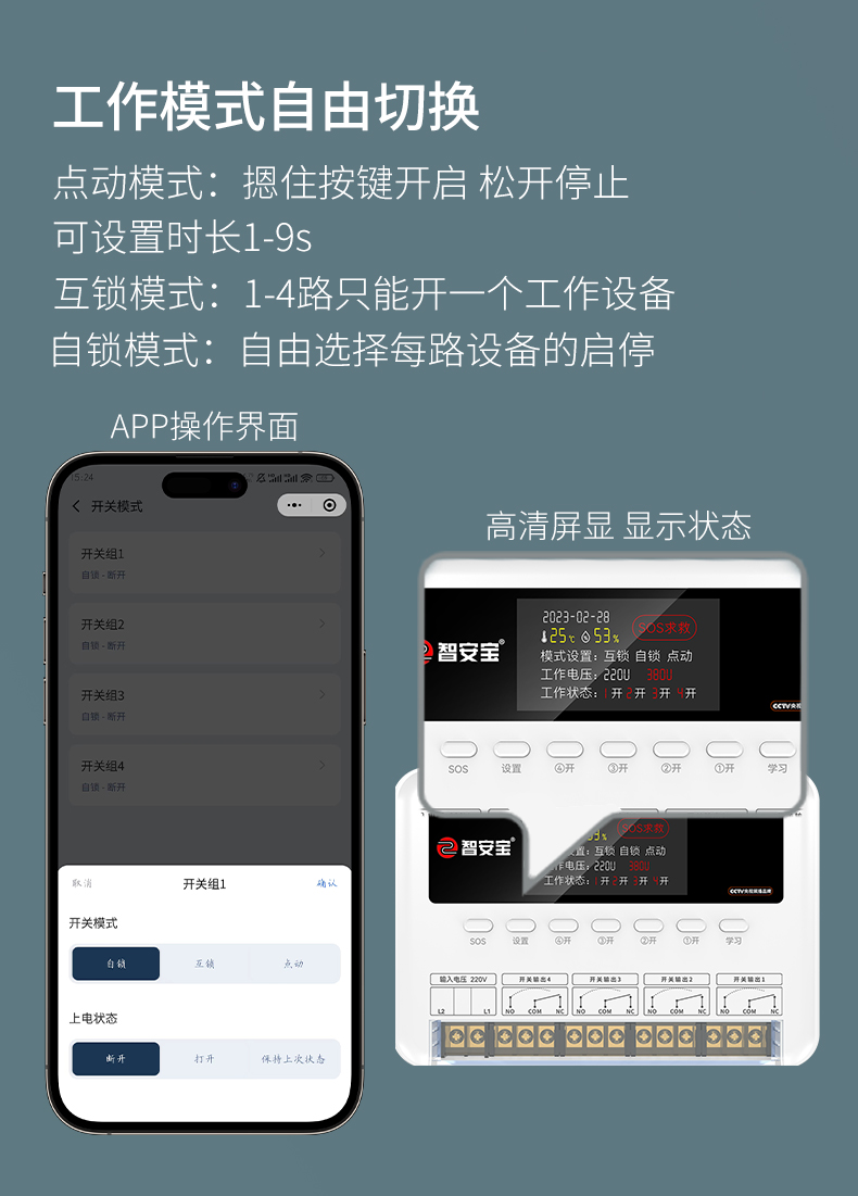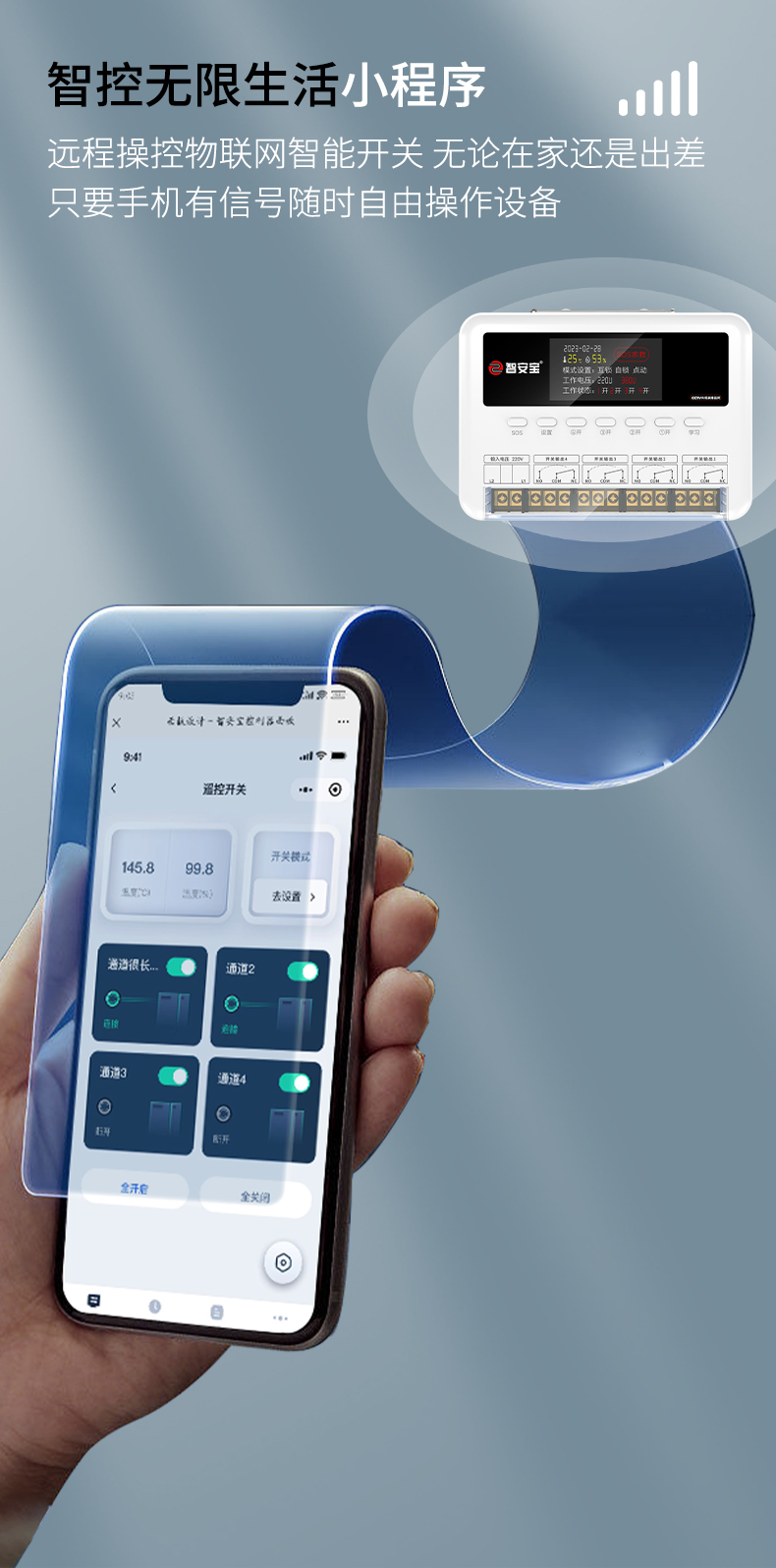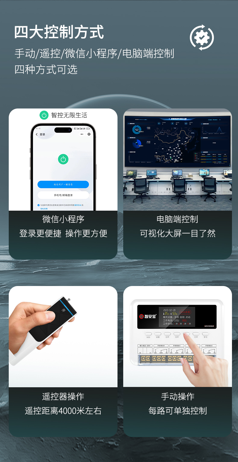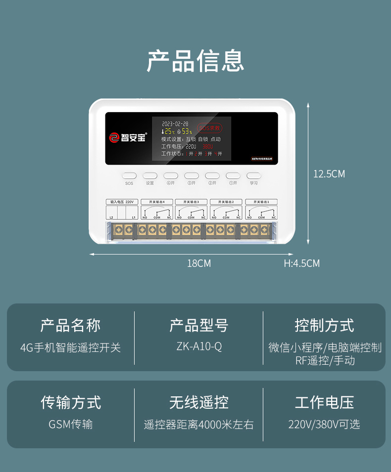 ZK-A10Q是一款四路智能遙控開關(guān),手機小程序遠程遙控不限距離,有四大定時模式,場景設(shè)置,電腦端可視化大屏顯示。