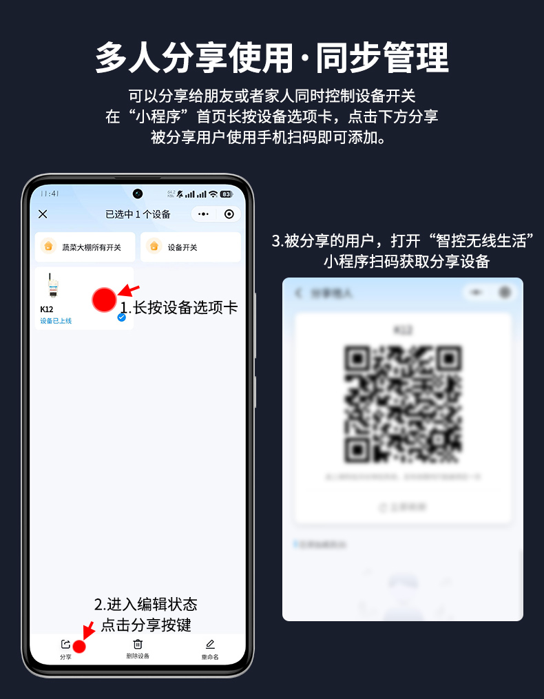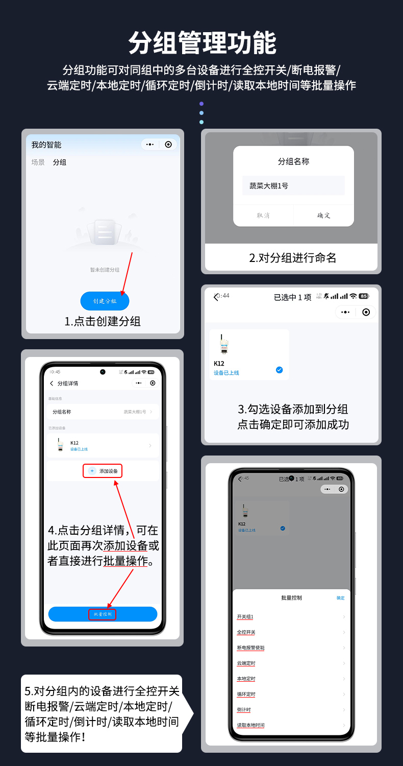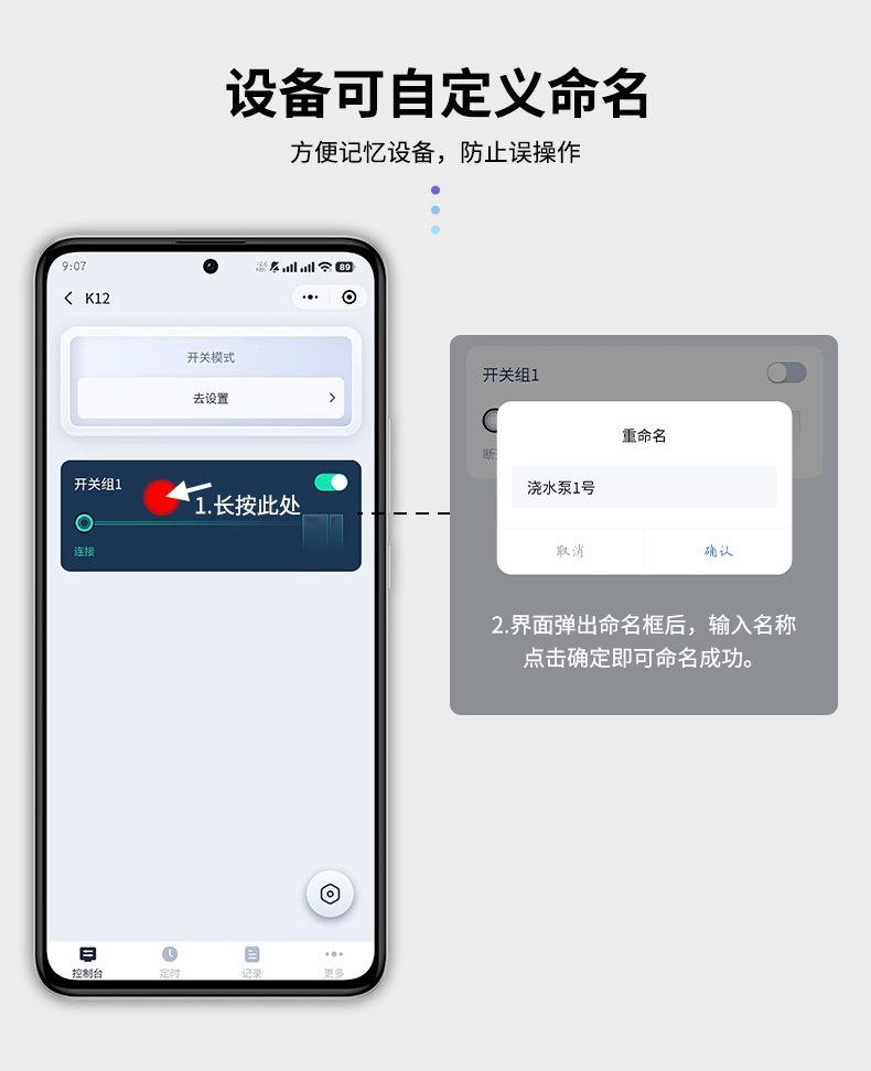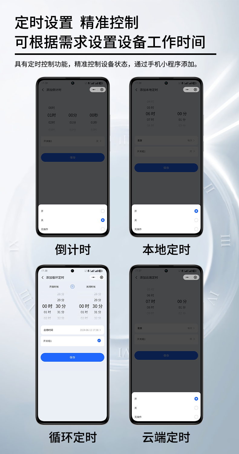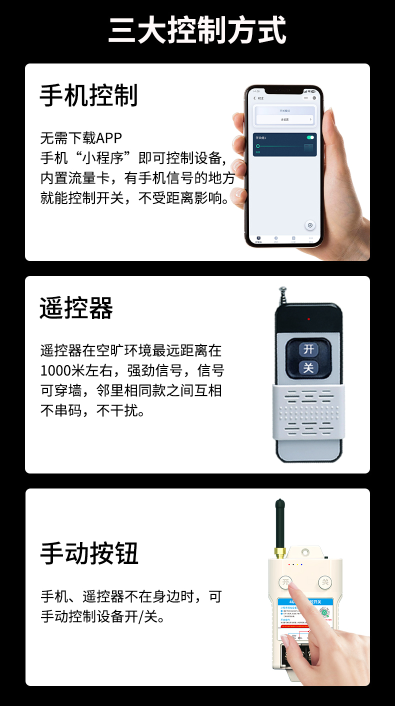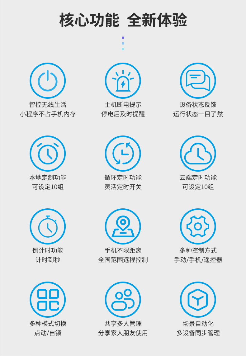 K12是一款單路智能遙控開(kāi)關(guān),手機(jī)微信小程序即可遠(yuǎn)程控制開(kāi)關(guān),不限距離,四種定時(shí)模式,精準(zhǔn)把控工作時(shí)間