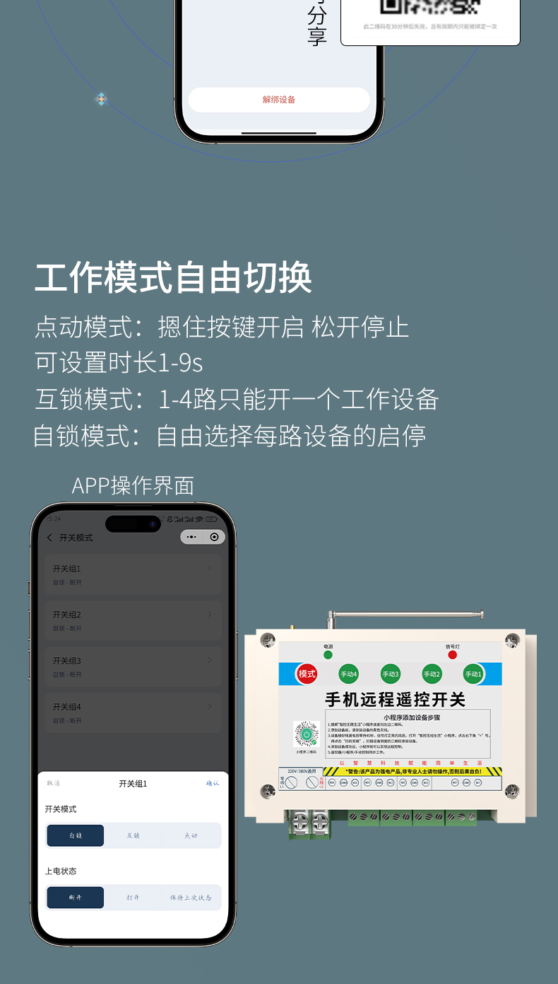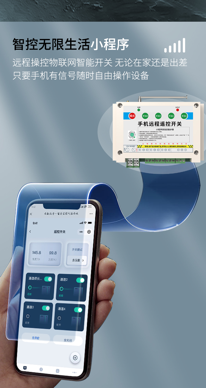 Z信K-G4是一款四路智能遙控開關(guān),手機(jī)微小程序即可遠(yuǎn)程控制,不限距離,四種定時(shí)模式,SOS、斷電報(bào)警提示