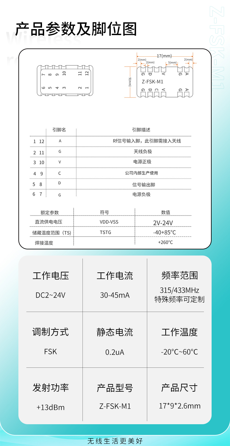 首頁 > 產品 > 無線收發(fā)模塊 > 無線發(fā)射模塊 > Z-FSK-M1無線發(fā)射模塊